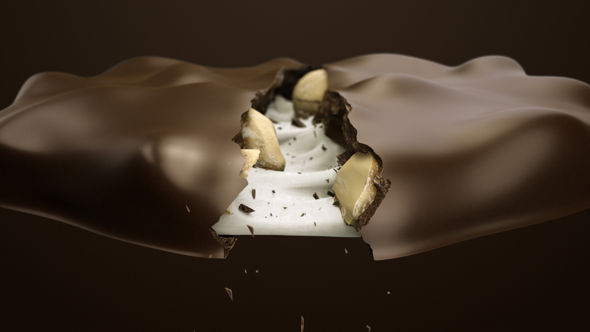 A TV commercial for Carletti P-tærter demanded an outro showing a P-tærte breaking apart and revealing the French nougat inside. The elastic nature of nougat posed some challenges but we made it work in the end.